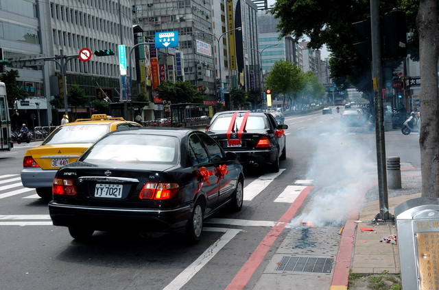 「放炮舅仔」(就是我弟)當然一早便stand by好,等到禮車一靠近,便放鞭炮宣告,迎親隊伍來囉。