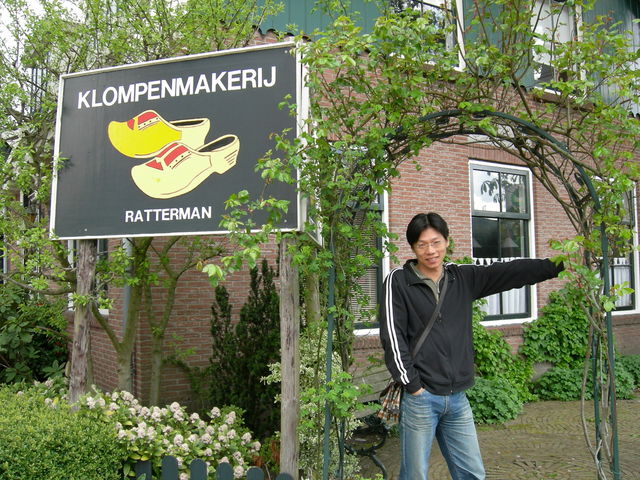 提到荷蘭,大家的印象不外乎鬱金香、風車還有木鞋。我們下飛機的第一站就是木鞋工廠,不過出門前已經來玩過的婆婆有交代,木鞋價錢很貴又不實用,而且家裡已經有一雙,不要再買啦!基於此,所以我們只是進來拍拍照,參觀一下木鞋怎麼製作的過程,連個小鑰匙圈都沒買。(看我多乖)