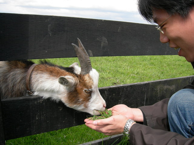 失敗的示範照。(老公,既沒有拍到羊也沒有拍到我的臉,請問是在拍欄杆嗎?)