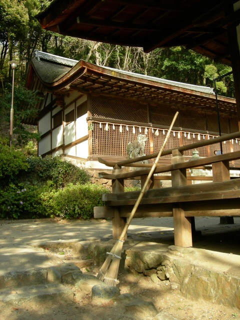 超喜歡這一張,有一種風景明信片的感覺(自己覺得啦)。照片中的建築物就是考證建於平安時代現存最古老的神社建築,位於拜殿之後。