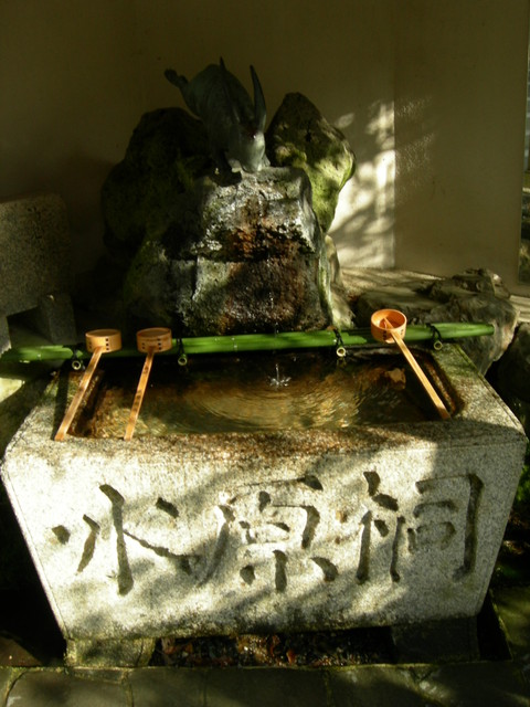 剛剛洗手的是「桐原水」,古傳宇治七眼名水之一,也是現存唯一的一眼古名泉,至今泉水仍源源不斷地噴湧。