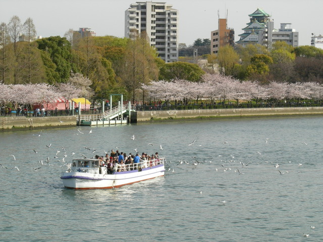 從大阪城到造幣局要先過這條很大的河川,叫什麼名字我已經忘光光了(所以說遊記不要拖太久啊),但是兩旁的櫻花真是開到荼靡,燦爛的讓我心都痛痛的說。原以為看過了哲學之道啦、長谷寺啦,應該已經不會再有櫻花讓我看到呆掉,結果這長長的河兩岸,又讓我流連到根本不想進去造幣局,只想在外面逛就行了。