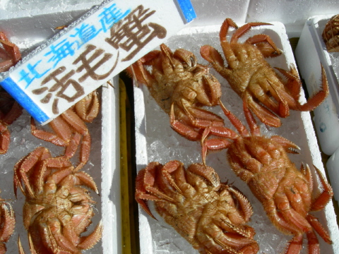 在走之前,我們繞到函館朝市,其實已經差不多都打烊了,還剩一些店家,我阿母竟然想要買帝王蟹回來,殺價殺了半天,終於買了一隻,請店家現蒸,然後急速冷凍,帶回台灣後只要解凍就跟新鮮的一樣好吃。